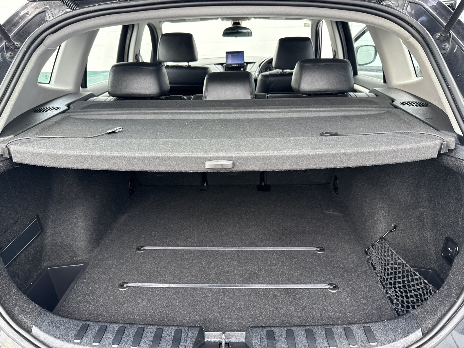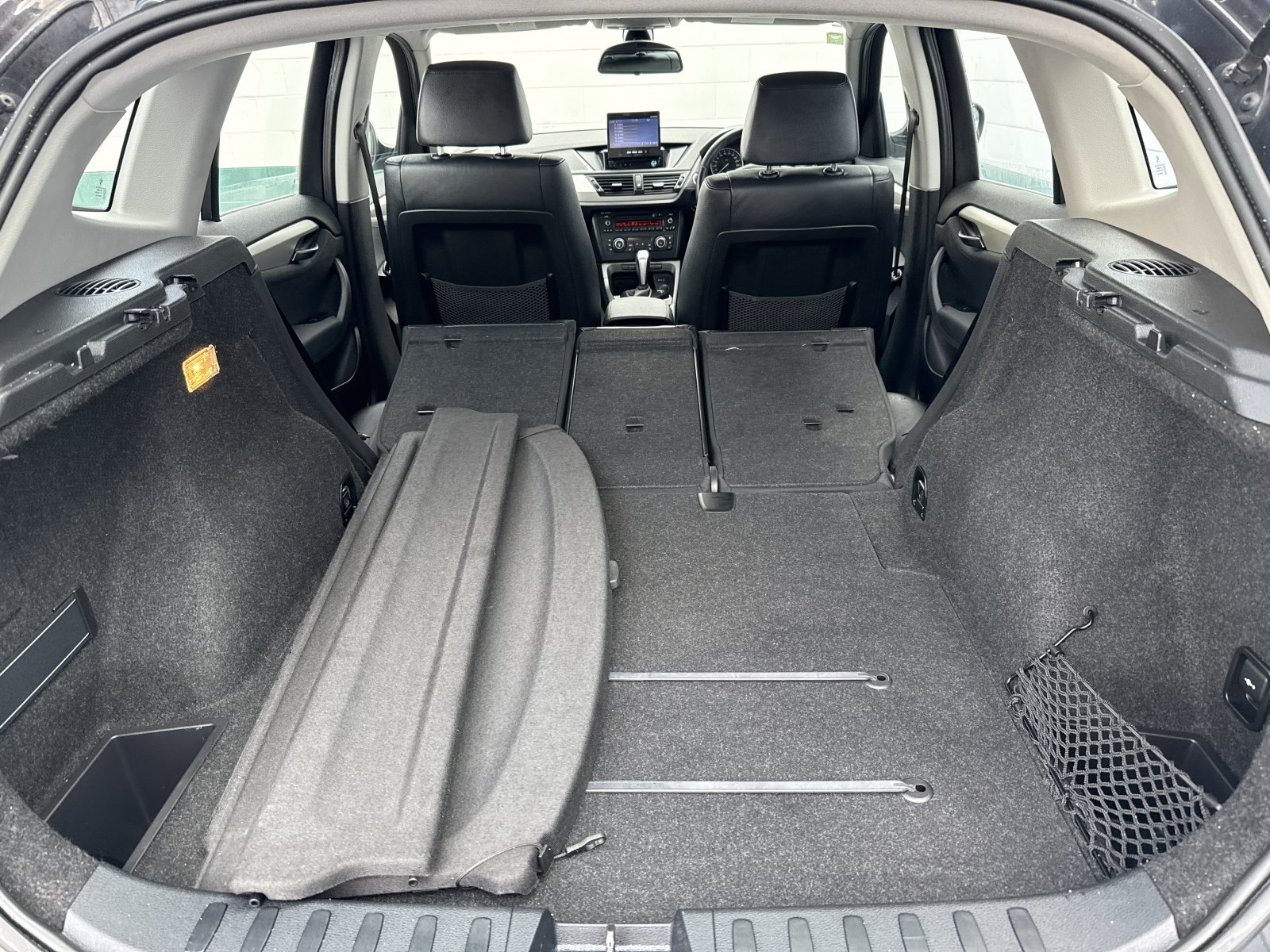The X1s cargo space is reasonable at 14.8 cubic feet. I loved the flexibility of having rear seats that fold in three sections fold all three 40/20/40 sections flat and youve got a versatile 47.6 cubic feet to work with. Youll also find a 3 deep under-floor storage compartment, 4 heavy-duty tie-down loops and a solid tonneau cover that swings up with the trunk lid.