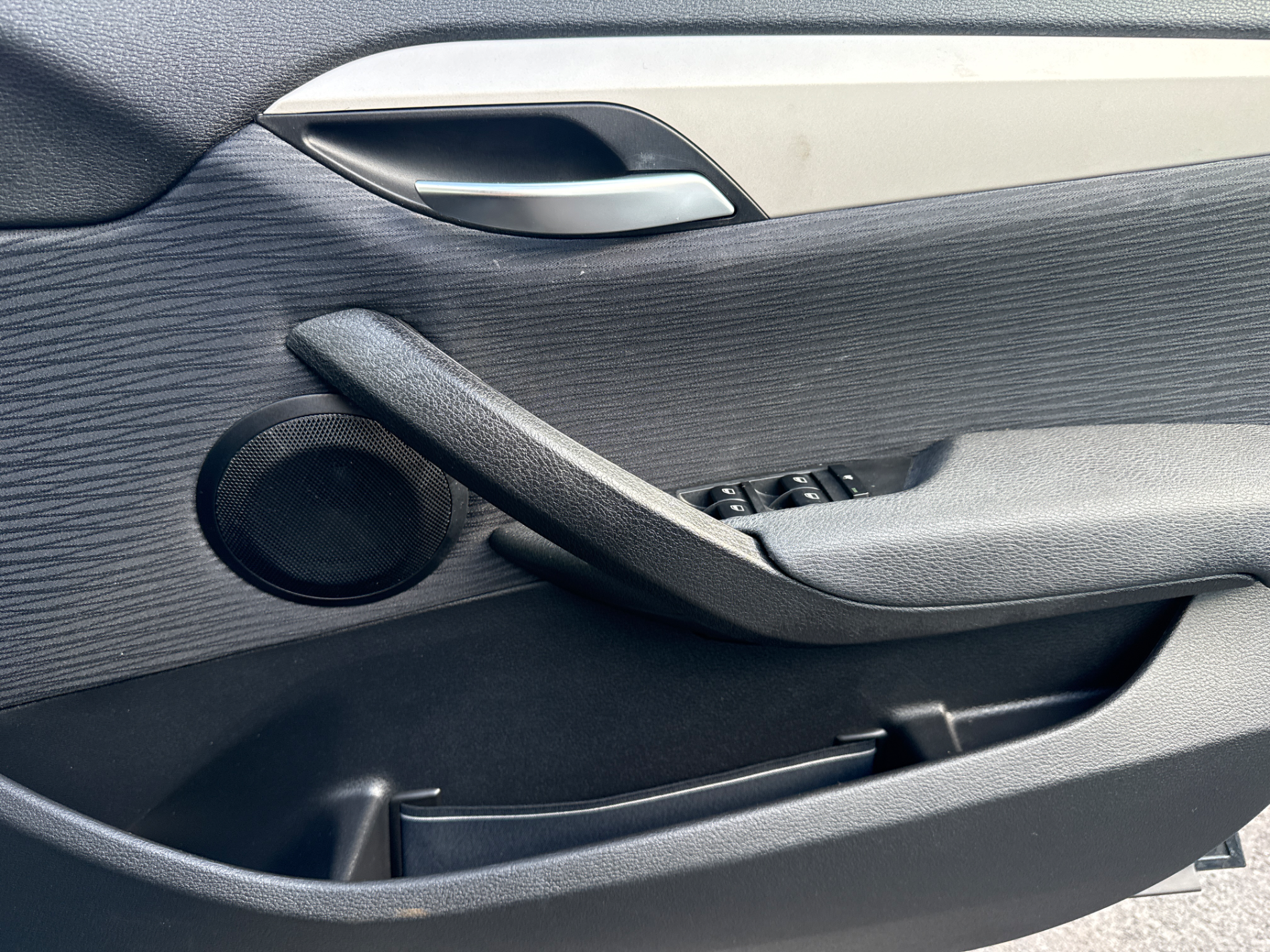 The X1's cabin is typical BMW, meaning clear gauges, sensible ergonomics and solid build and materials quality throughout. The driving position is more SUV than sedan. You sit high and peer down the X1's sculpted hood. The steering wheel is chunky and contributes to the sensation that this is a driver's car rather than a grocery getter. With the rear seats up, cargo capacity rates 14.8 cubic feet. Fold them down and space opens up to 47.7 cubes. Almost any other small luxury crossover SUV offers more.