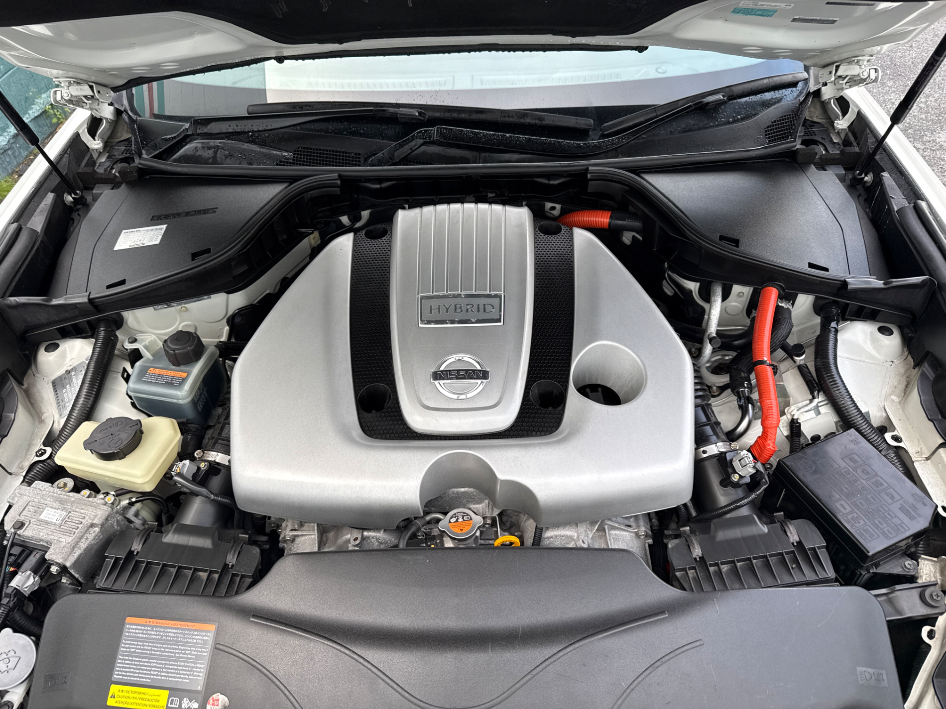 It features a 3.5L VQ35HR V6 petrol engine producing 225kW, supplemented by a 50kW electric motor, delivering power comparable to a larger V8 engine. The combined system provides ample power throughout the rev range and a generally quiet and confident drive.