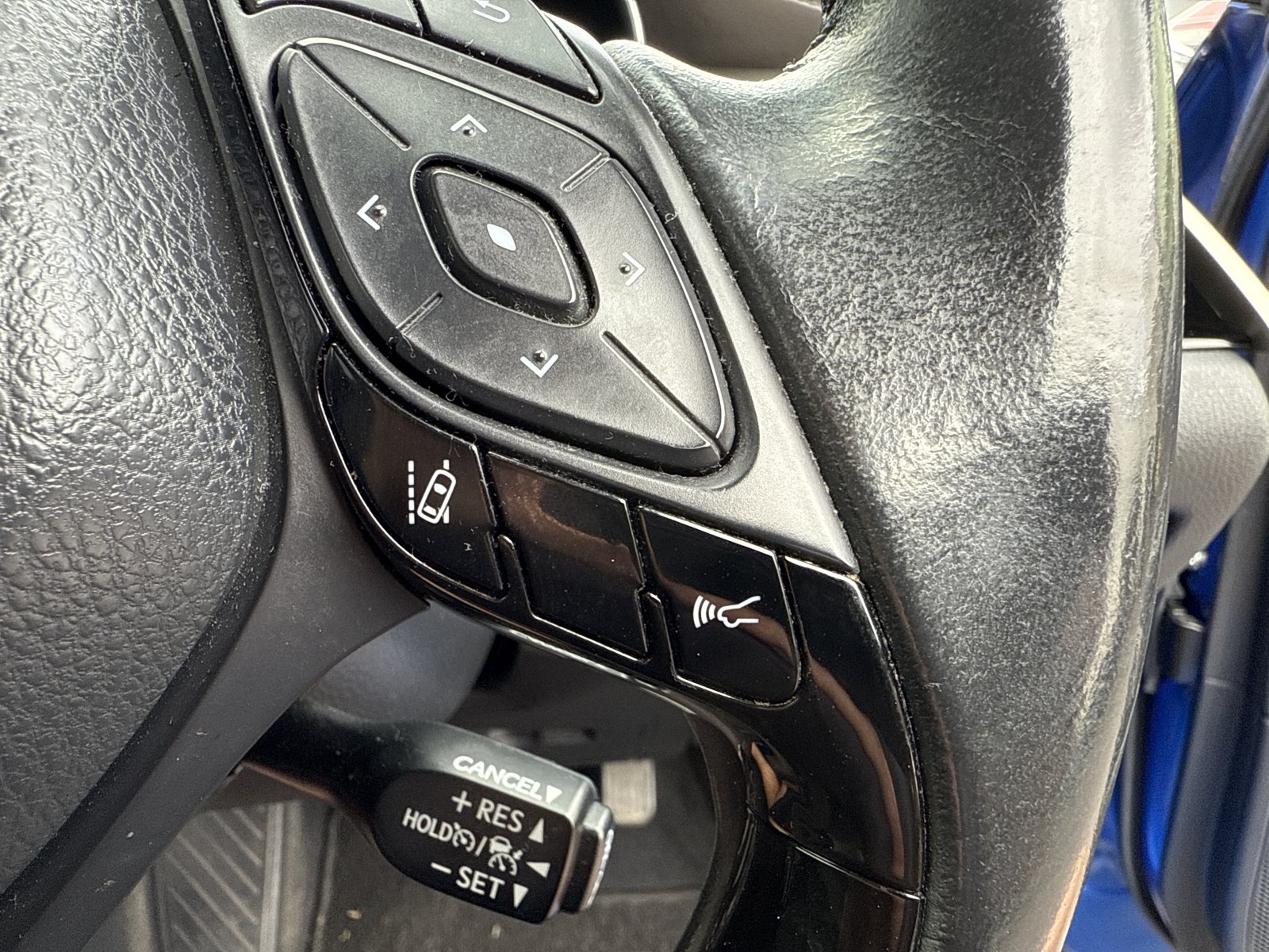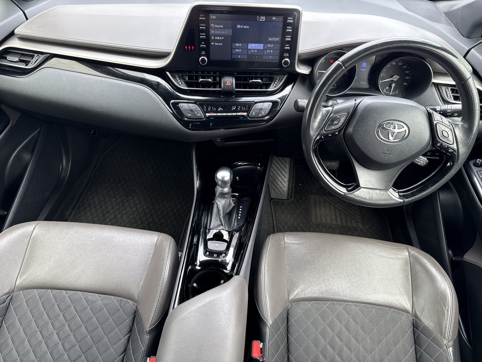 So far, so good. But where the Toyota steps up its game further is inside. Here you have an appealing cabin design, with a tactile leather steering wheel, excellent material quality including lovely soft dash pads and a diamond-patterned door inlay, a driver-oriented fascia, digital trip computer and respectable storage solutions. It feel premium-ish.